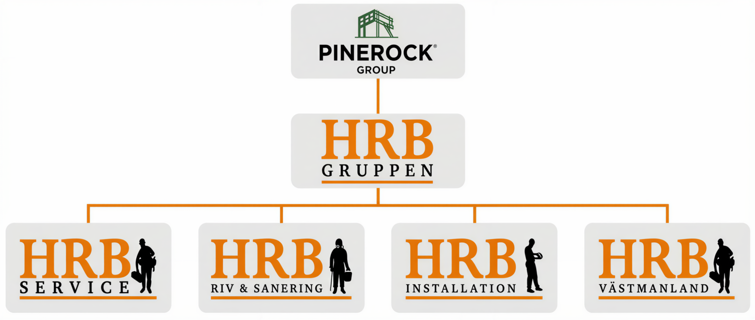 HRB Gruppen blir förvärvad av Pinerock Group koncernen. Vilket gör oss till systerbolag till andra framstående företag som Metrolit, R1 Bygg och LJ Bygg. Där varje gren styres lokalt och decentraliserad men under en centraliserad vision för helheten. Tillsammans inom koncernen vill vi utveckla en ledande nationell byggkoncern med starka lokala varumärken som drivs av lokala ledare.